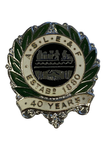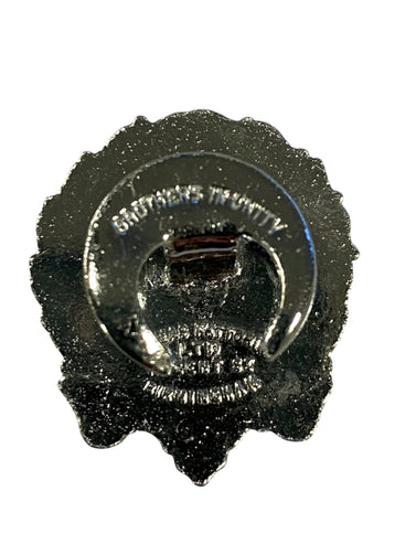 Crescent stud buttonhole badge. Silver coloured metal and enamel. 18mm diameter. No pin. Designed to be inserted into a button hole. This is a vintage badge and contains terminology no longer in current use. Inscribed on the back with the words "Brothers in Unity".