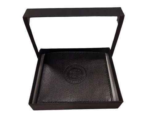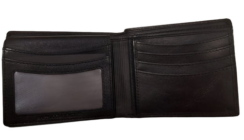 Sandringham Deluxe Billfold Wallet in black Nappa Leather. Embossed with the ASLEF logo. Supplied in a presentation box. Multiple pockets for credit cards, framed window for travel or identity card, rear pocket for notes.
