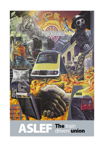There are 6 variations of this poster. All with individual images with either ASLEF The train drivers' union or the ASLEF logo at the bottom.